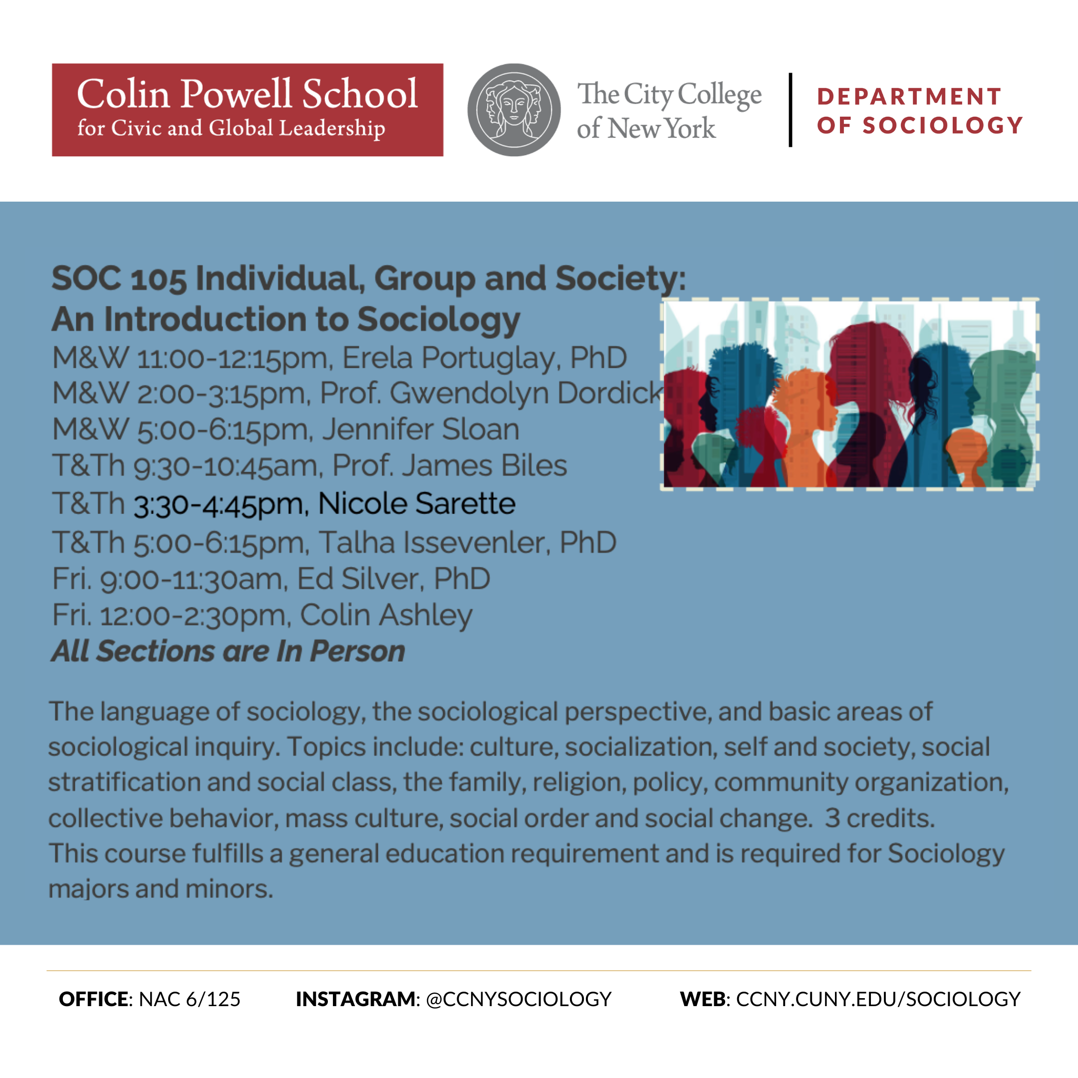 SOC 105 Individual, Group and Society: An Introduction to Sociology (3 Credits)